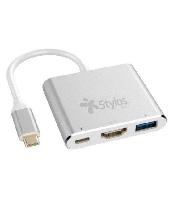 HUB MULTIPUERTO STYLOS 3 EN 1 HDMI 4K, USB 3.0, USB C (STCBHUB31S)